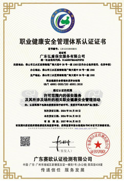 • 職業健康安全管理體系認證證書